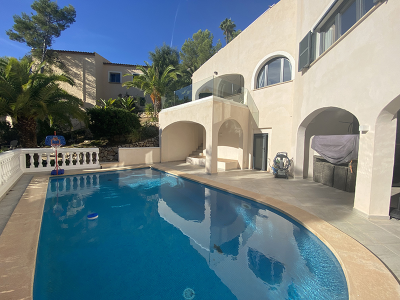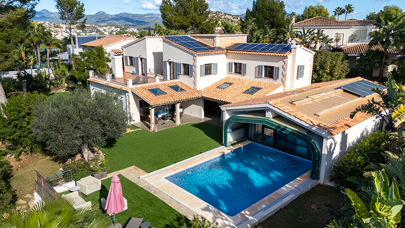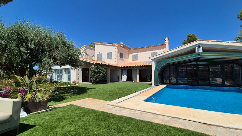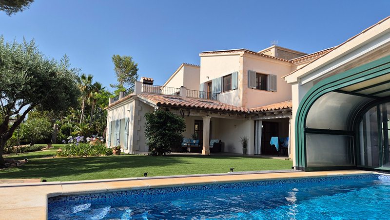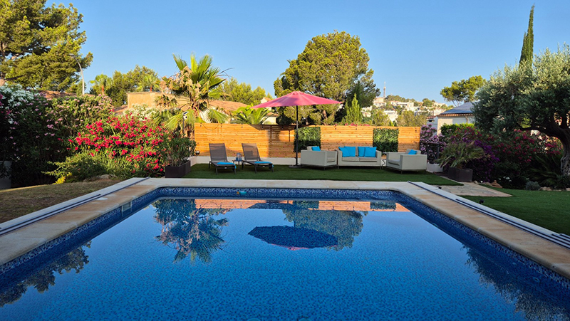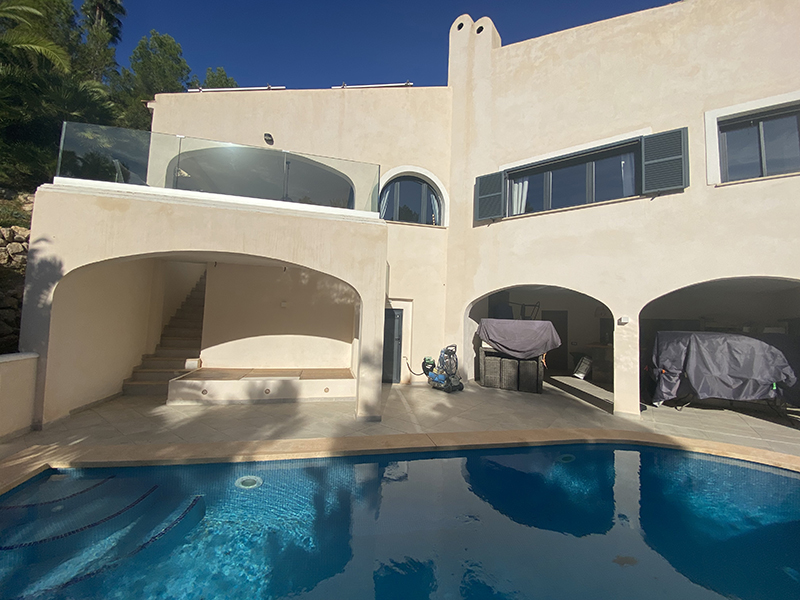 Dank der Südausrichtung genießt die Villa den ganzen Tag über Sonne. Die Dachterrasse und der Poolbereich bieten eine idyllische Atmosphäre zum Entspannen. Die Lage zwischen den bekannten Yachthäfen Puerto Portals und Port Adriano gewährleistet eine hervorragende Nähe zu internationalen Schulen, Golfplätzen, Stränden sowie zahlreichen Restaurants und Freizeitangeboten.